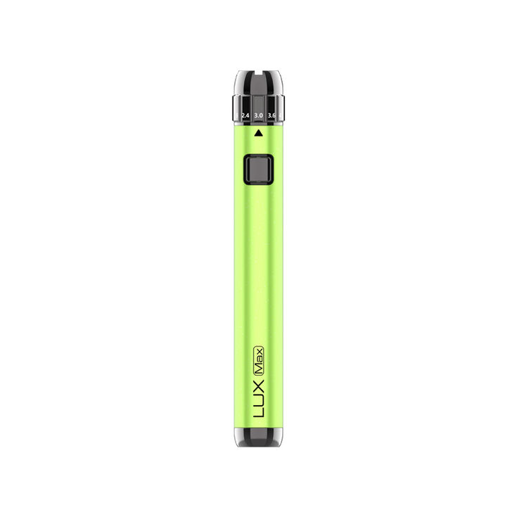 The Yocan LUX Max is the powerhouse of the LUX series, combining upgraded performance, extended battery life, and vibrant color options. Featuring a robust 900mAh battery, this pen-style vape battery gives users the freedom to enjoy longer sessions and higher voltage levels without constant recharging. Crafted with a durable alloy body, it offers a premium look and feel, while the 510-threaded connection ensures broad compatibility with most cartridges. The variable voltage dial and pre-heat setting make it easy to tailor your experience, whether you're microdosing or going full session mode. And with USB-C charging, it’s always ready to go when you are.